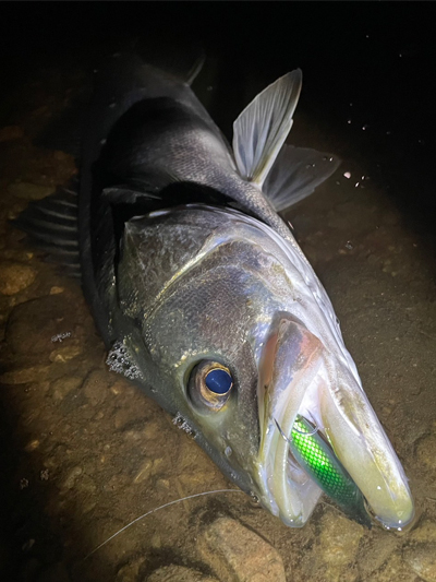 昨年の秋シーズン、河川やサーフエリアでのマルスズキの釣りにはタックルを統一して「シーバスPEパワーゲーム 1号」に「ショックリーダースムーズロック®プラス 6号」を使用。