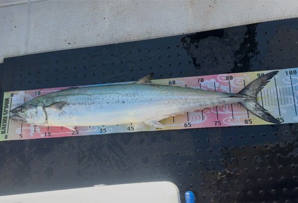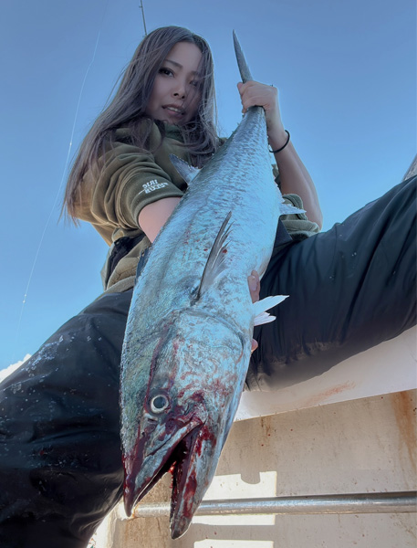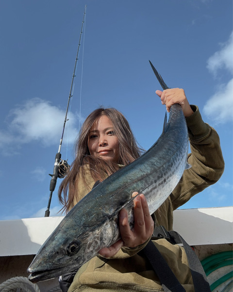 そして午後からいよいよ私にもあたりが!! 初アタリなので慎重に巻き上げていくと丸々とした鰆でした! 鰤狙いとはいえ、美味しいお魚。