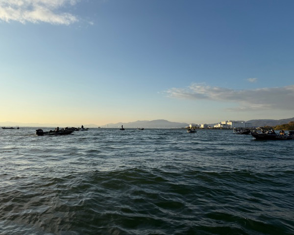 1か月以上前から毎週琵琶湖に通って北湖ばかりでプラをしておりましたが、大きなバスを釣る方法が中々見つけれず試合になってしまいました。小さいながらも少しでもウエイトの良いバスが釣れるポイントで揃え、残りの時間をサイズアップできるポイントを回ろうと試合に挑みました。