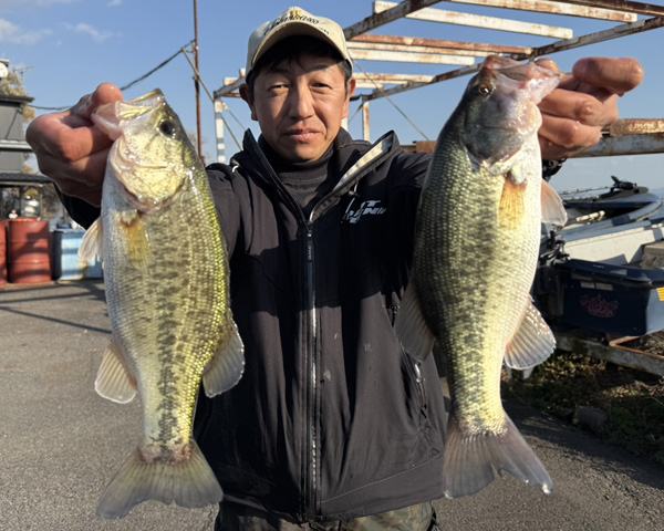 その後も粘り同じようなサイズが4匹釣れましたが、リミットの5匹に届かず沈黙。こんな事もあるかもと試合前日にお守りの為用意した、いつも私が銀山湖の試合で使用しているタックル「ソラローム®エクスレッドtypeNS 3lb」のダウンショットでリミットメイクの5匹目を絞り出しました。
