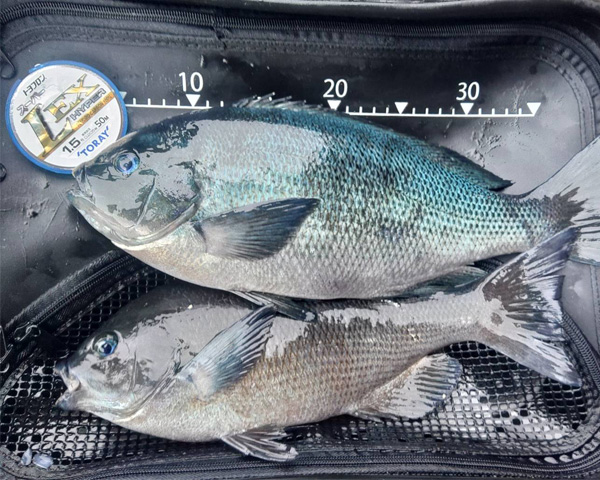 光の加減や天候の関係で道糸が見にくい1日でしたが「銀鱗®スーパーストロング ブラックマスター®MK」は非常に見易く操作もしやすかったので、これからの寒グレシーズン新しい武器になりそうです。