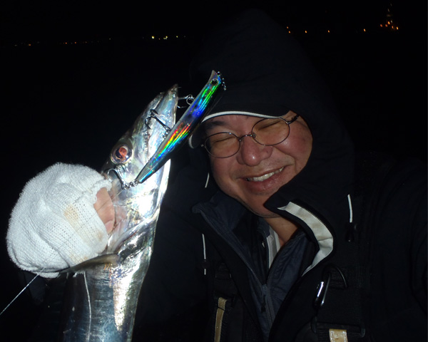 水面の根がかりのような太刀魚のヒットは結構腰に来る。一時風が吹き始めてバイトが遠のくもなじむとまた連続ヒット。もう瞬発的なバイトにフッキングに行けないぐらい疲労し、ワンテンポ遅れてのフッキングになるも、フッキングミスが引き金に次がヒットしたりもう無茶苦茶。