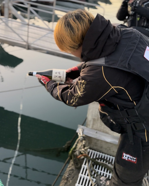 開会式では、大会タイトルにもなっている私の地元竹原で生まれた「ちぬ」と名の付く唯一無二の日本酒「ちぬ賛舞」の奉納で、参加者の皆様の安全・大漁釣行を祈願し出船、安浦沖の馬島、小熊島、横島、地磯エリアへ3隻の船で渡礁しました。