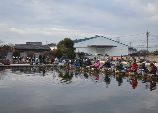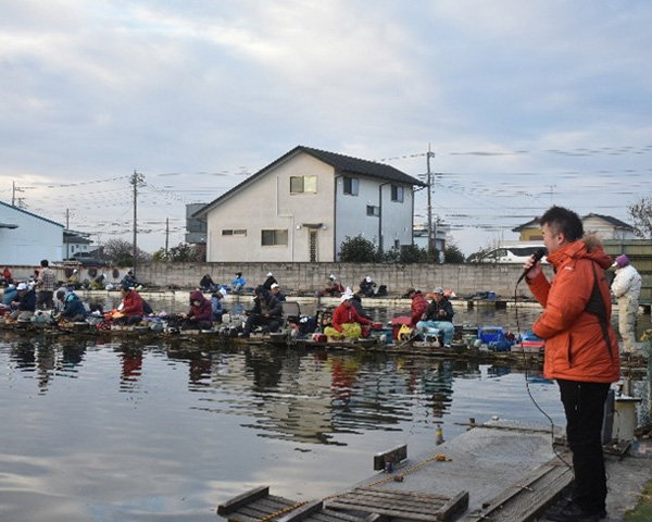 10時より早掛けミニ大会も実施。シマノ貸しロット、マルキユーエサ教室、泡づけ本舗、小嶋や、東レと商品展示と楽しい催しが目白押し!(メーカー敬称略)