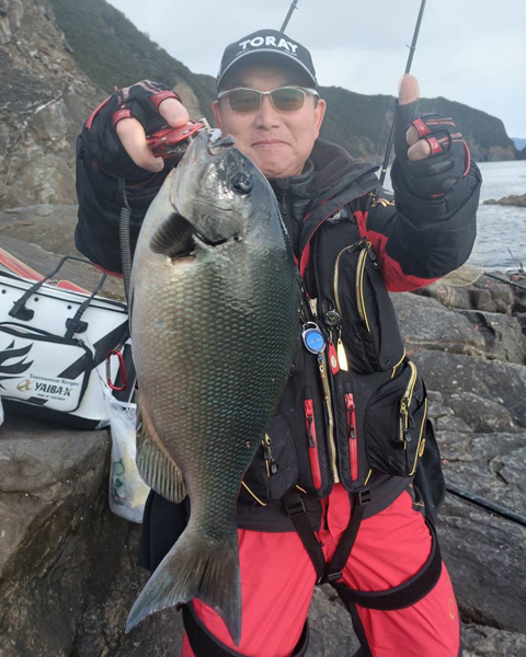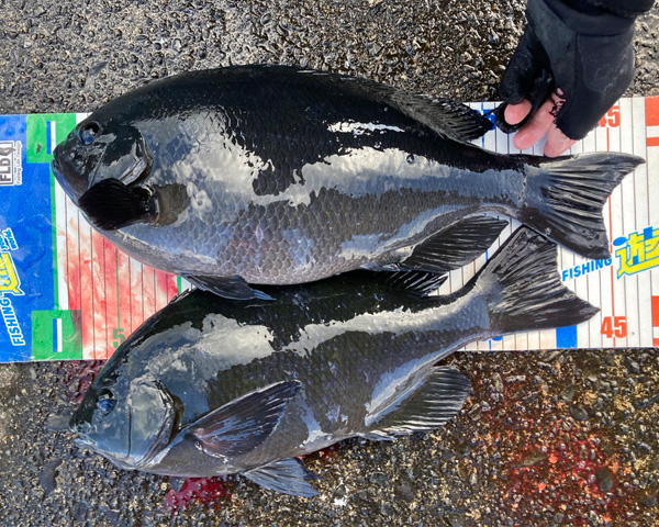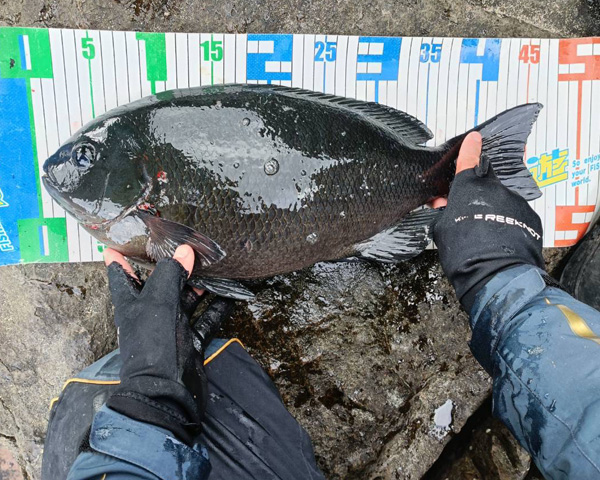 釣果としては3人とも40オーバを釣り上げ、フィッシング遊鈴鹿店長K氏は紀東の寒グレらしいグラマラスなクチブト47.5cmを釣り上げ、最高の釣行となった。