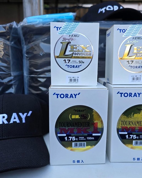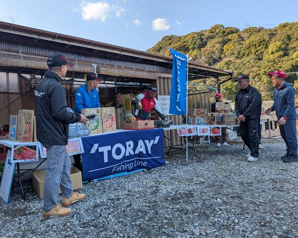 表彰式のあとは 三好テスターの進行にてお楽しみ抽選会が行われ、ベスト、バッカン、ハリス(トヨフロン®スーパーL・EXハイパー)、道糸(銀鱗®SSトーナメンターMK1)等の東レ製品。高級すき焼肉、ステーキ、パイナップル等、豪華賞品が参加者に当たりました。